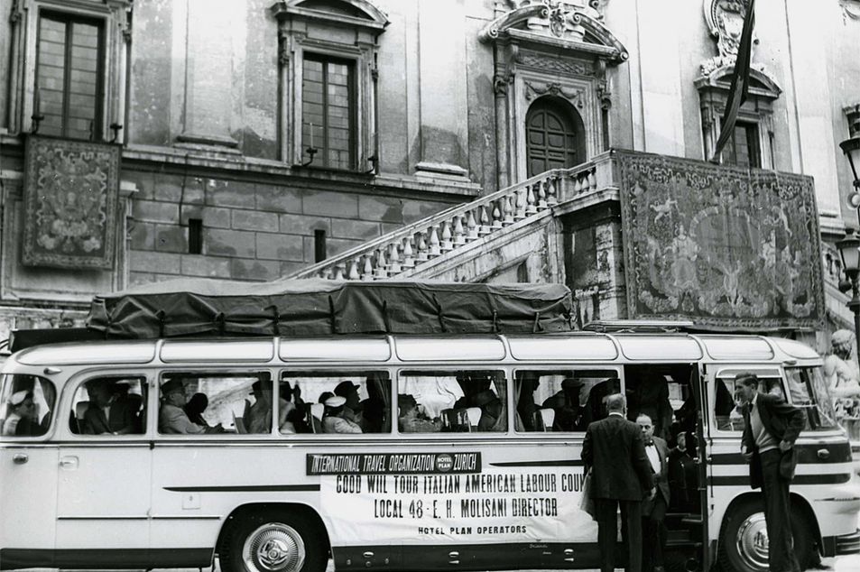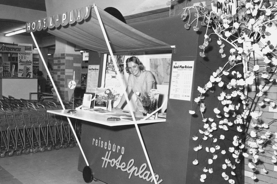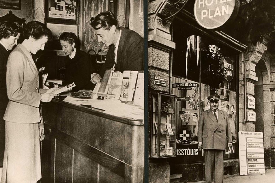 1935 gründete Gottlieb Duttweiler Hotelplan mit einer klaren Vision: Ferien für alle. Mit Sonderzügen ins Tessin wurden erschwingliche Ferien erstmals möglich. Trotz des Zweiten Weltkriegs hielt Hotelplan das Reisen am Leben – mit Veloferien und Kurzaufenthalten in den Schweizer Bergen.