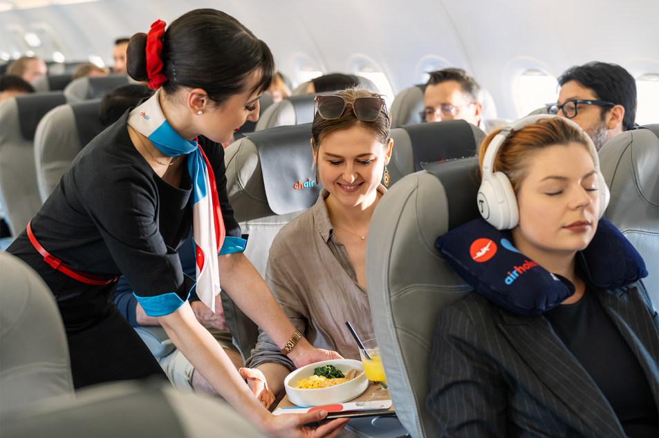 Chair Airlines ist der Meinung, dass diese kulinarischen Höhenflüge nicht bei der An- und Abreise enden müssen. Darum haben sie es sich auf die Fahne geschrieben, ihre Fluggäste auch über den Wolken mit delikaten Gaumenfreuden zu verwöhnen. Dabei legen sie grossen Wert auf regionale und frische Ware. Tiefkühlprodukte? Nicht bei Chair! Ihr Catering wird zwei Mal täglich mit frischem Brot aus einer Bäckerei in Kloten beliefert. Jeden Nachmittag bereitet die Catering-Crew die Sandwiches für den folgenden Morgen zu.