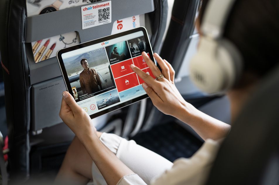Auch an Bord setzt chair auf Komfort und Einfachheit: Mit «Chairtainment» steht ein kostenloses Inflight Entertainment System zur Verfügung - direkt auf dem eigenen Gerät, ohne App-Download oder Registrierung. Filme, Serien, Musik, Podcasts und Spiele sorgen für beste Unterhaltung während des Fluges.
