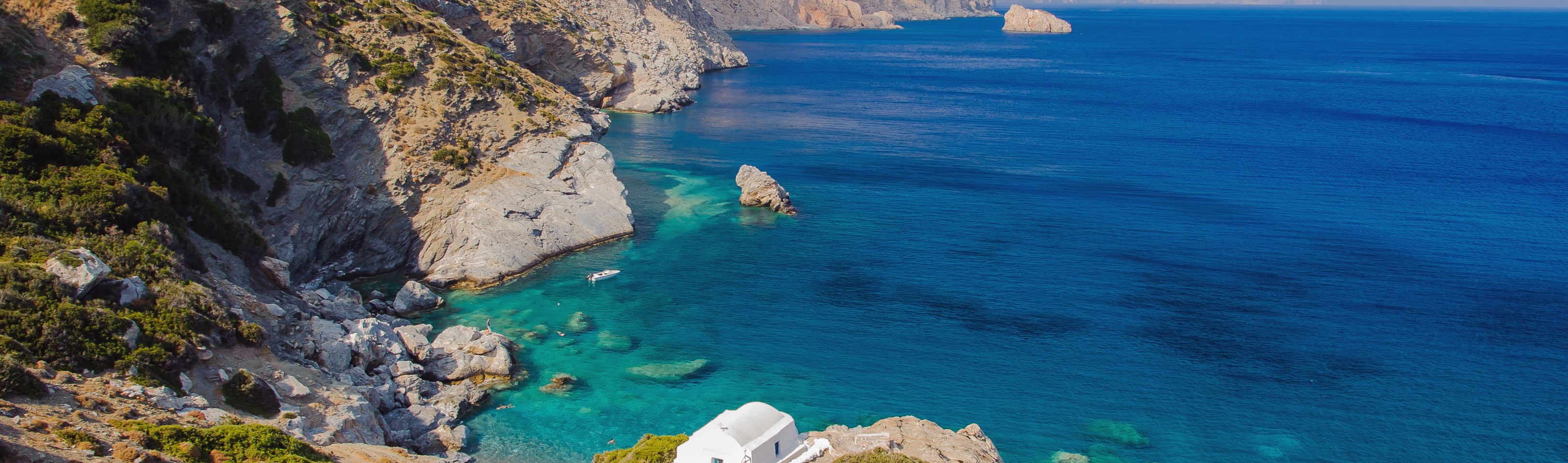 Gebirgig, wild und ursprünglich. Amorgos bezaubert mit einem urspünglichen Kykladencharme und herrlichen Sonnenuntergängen in der ersten Reihe. Unzählige Maultierpfade führen zu einsamen Buchten und Kapellen und machen die Insel im Frühling und im Herbst zum unvergleichlichen Wanderparadies.