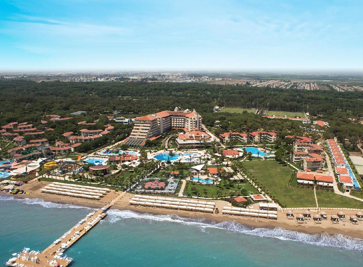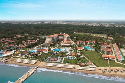 Das weitläufige und beeindruckende Hotel befindet sich direkt an einem Sandstrand, der mit der Blauen Flagge ausgezeichnet wurde. Die Stadt Belek ist etwa 6 km entfernt. Für Naturliebhabende sind die Zeytintasi-Tropfsteinhöhlen in rund 30 km Entfernung gelegen. Der Flughafen Antalya (AYT) ist mit einer Distanz von knapp 30 km bequem erreichbar.