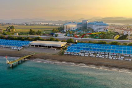 An ruhiger Lage befindet sich das Hotel an der Küste südlich von Side. Nur die Küstenstrasse trennt es vom hoteleigenen, flach abfallenden Sand-/Kiesstrand, den Sie bequem durch eine Unterführung erreichen. Die Innenstadt von Side liegt in einer Entfernung von etwa 25 km. Sie finden dort verschiedene Restaurants, Bars und Geschäfte. Die antike Stadt Side hat in ihrer Altstadt auch viele Sehenswürdigkeiten zu bieten. Zum Flughafen von Antalya sind es etwa 80 km.