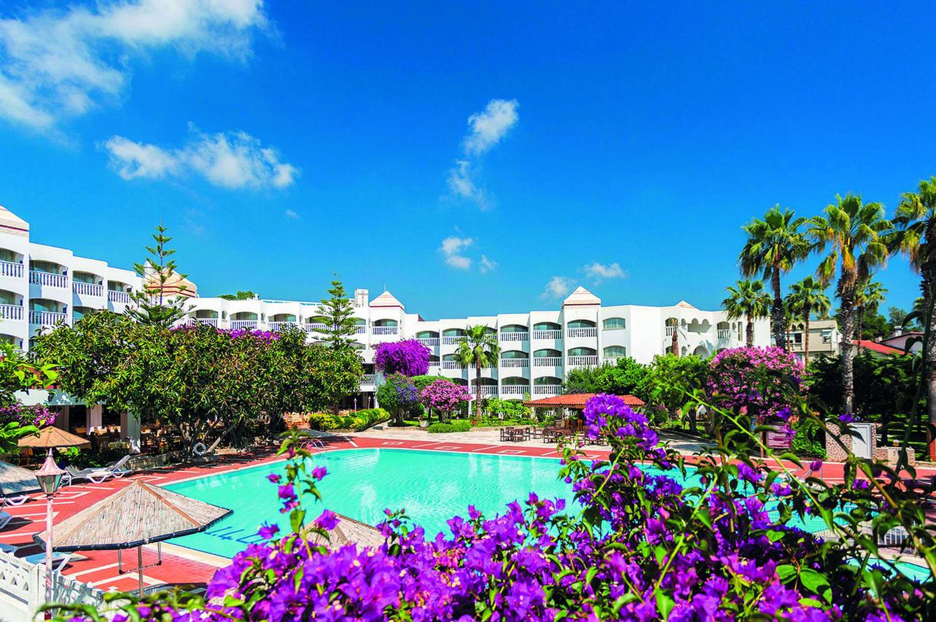Die beliebte Ferienanlage mit ihren zwei- bis dreistöckigen Gebäuden (in einem Block mit Aufzug) verfügt insgesamt über eine Fläche von ca. 20.000 m2und über 176 Zimmer. Zu den verschiedenen Einrichtungen gehören die Empfangshalle mit Réception, Bars und TV-Ecke, sowie das Hauptrestaurant (internationale Gerichte) mit Nichtraucher und Terrassenbereich (Nichtraucherzone). In der Snack Bar A-la-Carte-Restaurant (Kargı Bar) (internationale Küche) können unsere Kunden zusätzlich mittags speisen (12:00 bis 16:00 Uhr gegen Gebühr.) Arzt-Service (gegen Gebühr) befinden sich im benachbarten Schwesterhotel Defne Star. Wi-Fi ist in der Lobby, im Garten, Barbereich, auf den Zimmern und am Pool- und Strandbereich inklusive. In der gepflegten Gartenanlage sind Sonnenterrassen mit üppigen, subtropischen Pflanzen und Bäumen zu finden. Am Strand, Pool und in der Gartenanlage stehen unseren Gästen Liegen, Auflagen, Sonnenschirme und Strandtücher (im Zimmer) kostenlos zur Verfügung. Ein Süsswasserpool. Unsere Gäste können den Aussenpool mit vier Wasserrutschen (stundenweise und wetterbedingt) im benachbarten Schwesterhotel „Defne Star“ mitbenutzen.