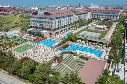 Die komfortable vierstöckige Hotelanlage Trendy Verbena Beach besteht aus 4 Gebäuden und verfügt über eine grosse und geschmackvoll gestaltete Empfangshalle mit Réception, WLAN (gratis), Internetecke (gegen Gebühr) und Lobbybar. Buffet-Hauptrestaurant, 5 A-la-carte-Restaurants mit italienischer, französischer, mexikanischer und türkischer Küche sowie Fischspezialitäten, Patisserie, Poolbar, Strandbar, mehrere Bars. Geschäfte, Spielezimmer. Weitläufige und gepflegte Gartenanlage mit 2 Pools, Aquapark mit Wasserrutschen (stundenweise) und Sonnenterrasse. Die Nutzung von Liegestühlen, Sonnenschirmen und Badetüchern am Pool und am Strand ist gratis.