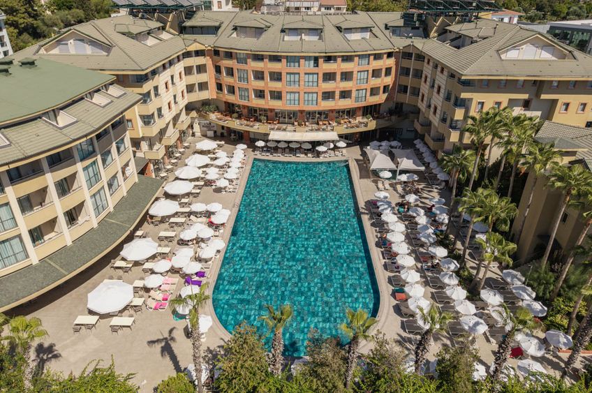 Das Hotel befindet sich in etwa 400 m Entfernung vom sanft abfallenden Sandstrand. Diverse Geschäfte, Bars und Restaurants sind in der näheren Umgebung zu finden. Als besonderer Tipp gilt ein Ausflug zur antiken Stadt Seleukia, die sich nur wenige Kilometer entfernt befindet und einen interessanten Einblick in die Geschichte der Region gewährt. Die Entfernung zum Flughafen Antalya beträgt ungefähr 65 km.