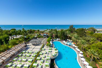 Familienfreundliches Viersternehotel an schöner Strandlage. Freuen Sie sich auf abwechslungsreiche Animation, vielfältige Gastronomie und Entspannung am Pool.
