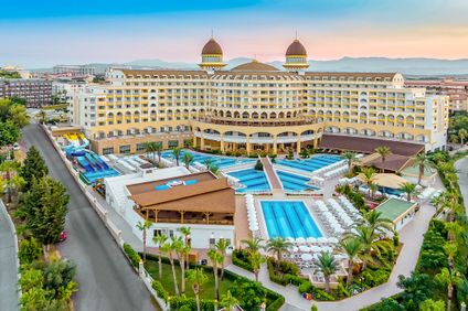Das attraktive Hotel befindet sich unmittelbar am sanft abfallenden Sand-/Kiesstrand. Etwa 5 km entfernt liegt das Stadtzentrum von Side, welches eine Vielzahl an Einkaufsmöglichkeiten sowie Restaurants und Bars bietet. Ein besonderer Geheimtipp für Ausflüge in der Nähe ist die beeindruckende antike Stadt Aspendos. Zum Flughafen Antalya sind es ca. 60 km.
