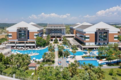 Etwas abseits der Stadt Manavgat liegt das Terrace Elite Resort Hotel. Der ca. 140 m lange, hoteleigene und flach abfallende Sandstrand ist etwa 1 km entfernt, es fährt mehrmals täglich ein Gratis-Shuttle. Die Einkaufsstrasse mit kleineren Geschäften erreichen Sie bereits nach knapp 600 m, zum nächsten Bazar ist es ungefähr 1 km. Manavgats antike Ruinen sind rund 13 km entfernt, doch ein Besuch lohnt sich. Zum Flughafen Antalya sind es um die 55 km.