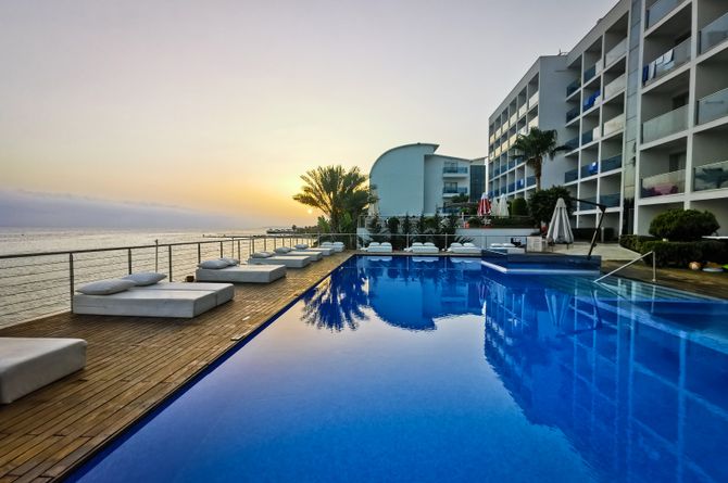 - BadeferienDirekt am StrandFlach abfallender StrandHoteleigener StrandPlanschbeckenPoolSandstrand