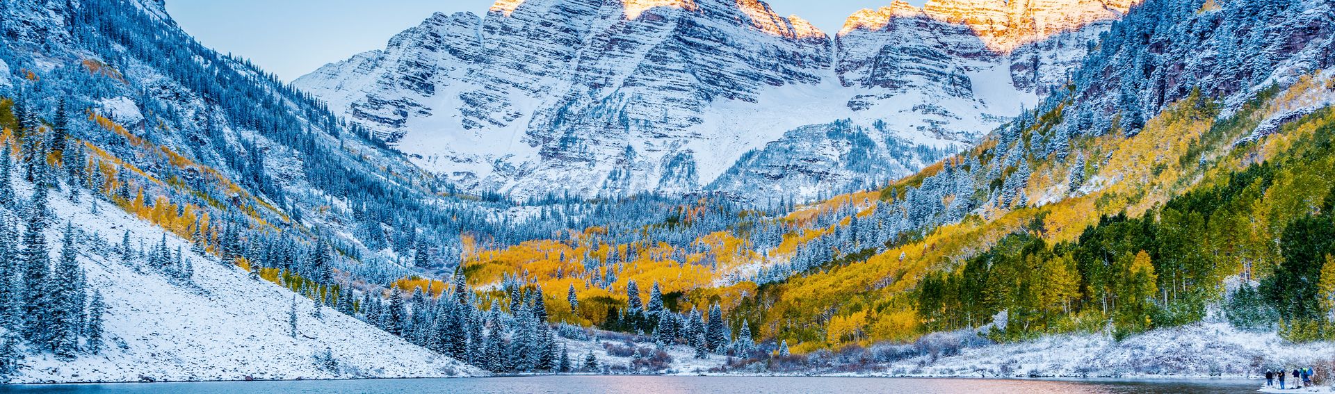Die Maroon Bells sind eine imposante Gebirgsformation in den Elk Mountains und ragen rund 16 km südwestlich von Aspen auf. Beide aus Tonstein bestehenden Bergspitzen zählen über 4000 m. Sie sind eine der beliebtesten Fotomotiven bei allen, die diese bewundernswerten Bergen erblicken.