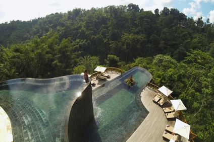 Einzigartig, hoch über dem Ayung River klebt dieses Villen-Hotel am Abhang. Das Zentrum von Ubud erreichen Sie mit dem Gratis-Shuttlebus in 30 Minuten.
