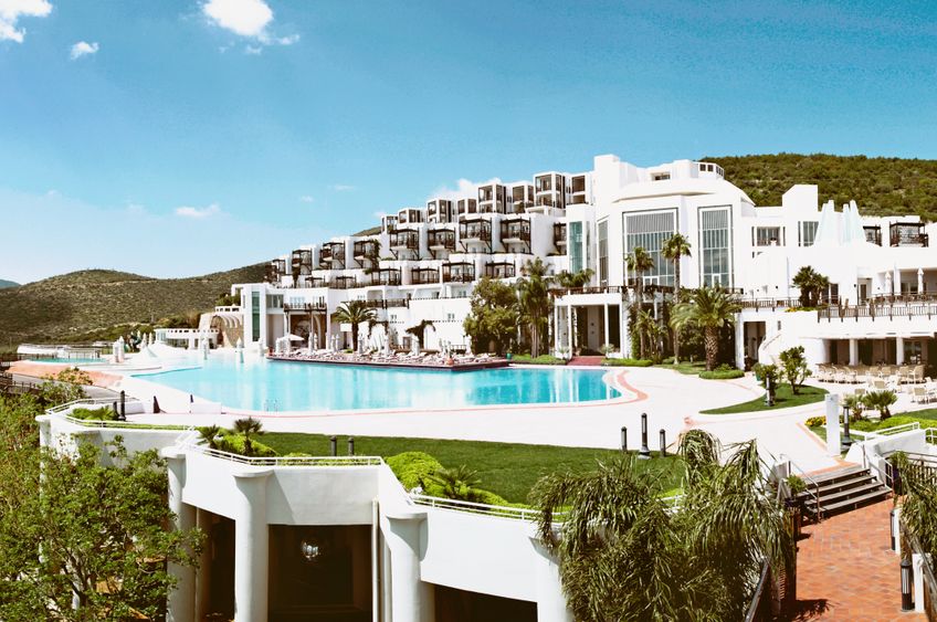 Terrassenförmig angelegte und luxuriöse Anlage bestehend aus mehreren drei- bis fünfstöckigen, miteinander verbundenen Gebäudeteilen mit fantastischem Panoramablick auf das Ägäische Meer. Zur Einrichtung gehören: elegante Empfangshalle mit Réception, Conciergeservice, gemütliche Lobbybar, Sat.-TV-Raum, Internetecke (gratis), WLAN (gratis); ausgezeichnetes Gourmetrestaurant mit lokalen Köstlichkeiten, 3 hervorragende A-la-carte-Restaurants (italienisch, asiatisch und mediterrane Spezialitäten) mit Terrassen, verschiedene Bars, Café, Snack- und Poolbar. Coiffeur, Geschäfte, Geldwechselstube, Spielezimmer; Hallenbad sowie eigener Jachthafen und Helikopterlandeplatz. Gepflegter Garten mit grossem Süsswasser-Infinity-Pool und Sonnenterrassen. Nutzung von Liegestühlen, Sonnenschirmen und Badetüchern beim Pool und am Strand gratis.