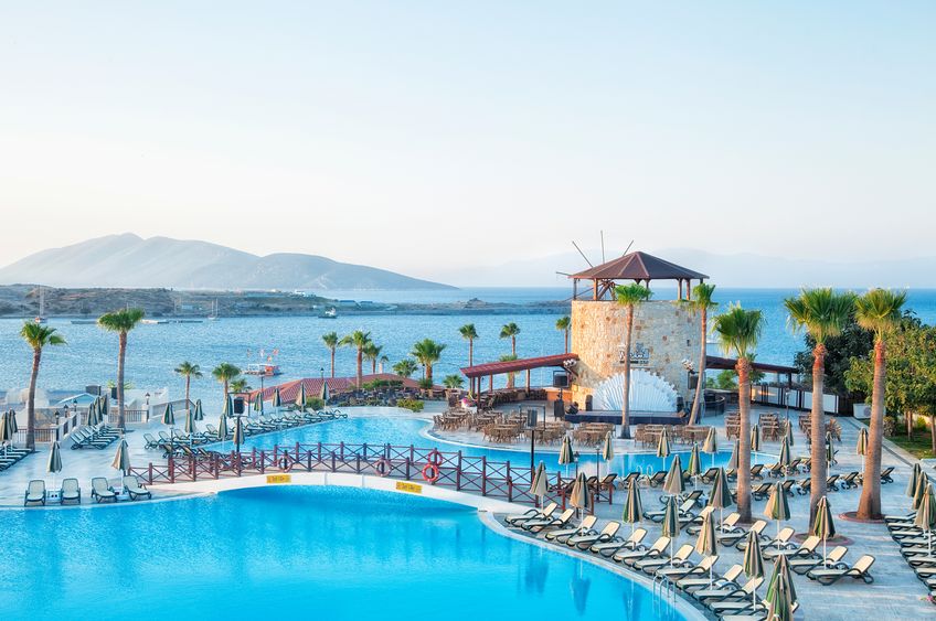 Das grosse Resort befindet sich an traumhafter Lage in der Bucht von Gümbet, direkt am etwa 200 m langen, hoteleigenen Sand-/Kiesstrand mit 3 Badestegen. Ins belebte Zentrum von Bodrum mit zahlreichen Restaurants, Bars, Einkaufs- und Unterhaltungsmöglichkeiten sowie Sehenswürdigkeiten sind es ca. 4 km. Der Flughafen Bodrum ist rund 35 km entfernt.