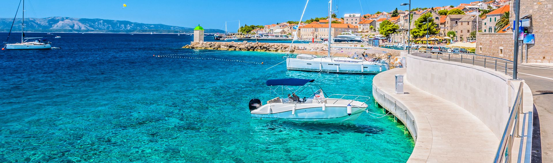 Der idyllische Bade- und Urlaubsort Bol befindet sich an der Südküste der Insel Brač und erstreckt sich mehrere Kilometer entlang der Küste. Er ist nicht nur einer der ältesten und beliebtesten Ferienorte Kroatiens, sondern auch für den Badestrand Goldenes Horn bekannt, welcher eindrucksvoll einige hundert Meter in das Meer ragt. Entdecken Sie die hübsche Altstadt mit ihren kleinen Restaurants und Cafés oder unternehmen Sie einen Ausflug in die beeindruckende Gebirgslandschaft. Das mediterrane Klima und die vielfältige Landschaft mit verschiedenen Buchten, romantischen Weinterrassen und Olivenhainen verzaubern jedes Jahr Tausende von Reisenden.
