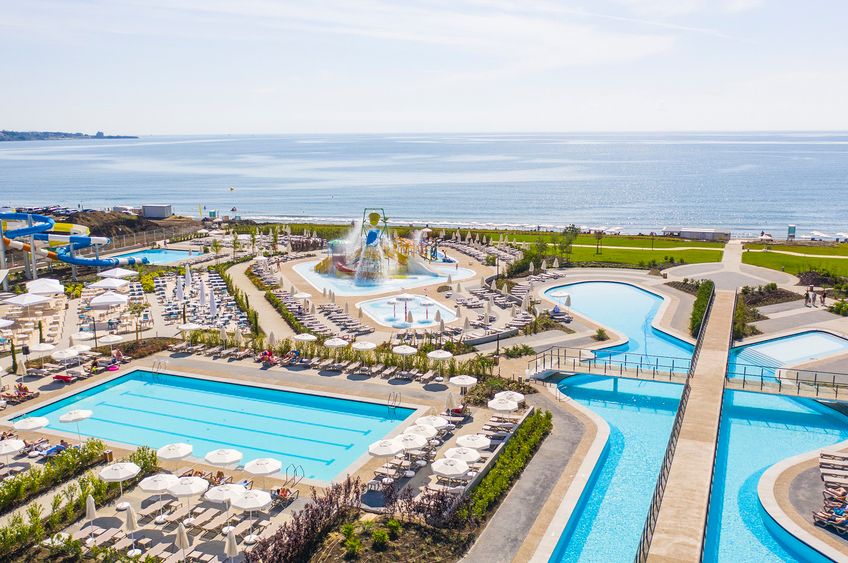 Das weitläufige Wave Resort verfügt über einen Empfangsbereich mit Réception, WLAN (gratis) und Lobbybar. Internationales Buffet-Hauptrestaurant, 3 A-la-carte-Restaurants (bulgarisch, mediterran und asiatisch), Poolbar, Strandbar und 2 weitere Bars. Coiffeur, Boutiquen, Kiosk, Amphitheater. Parkplatz gegen Gebühr. In der rund 4000 m2 grossen, gepflegten Aussenanlage befinden sich 1 Hauptpool, 1 halbolympischer Pool, 1 Infinitypool (für Erwachsene), 1 Pool mit Wasserrutschen für Erwachsene und Kinder sowie grosszügig angelegte Sonnenterrassen. Die Nutzung von Liegestühlen, Sonnenschirmen und Badetüchern am Pool und am Strand ist gratis.
