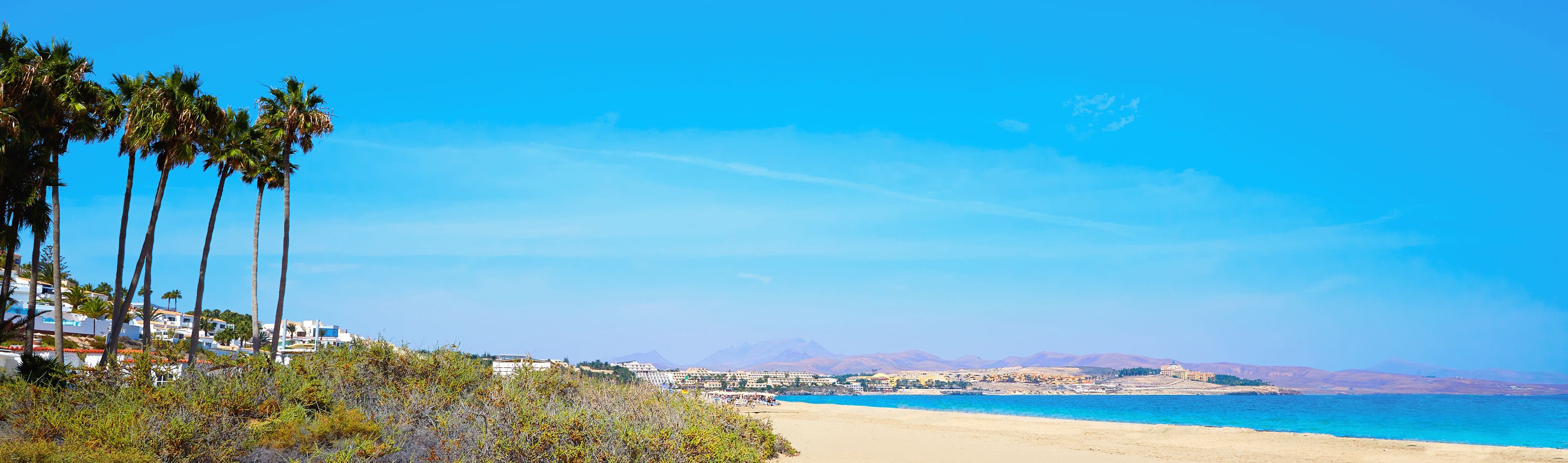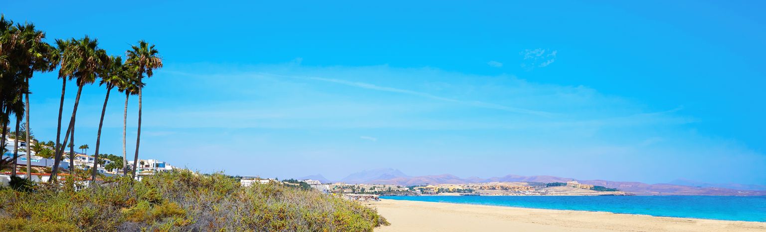 Costa Calma liegt im Norden der Halbinsel Jandía, an einer schmalen Landenge: Bis zur Westküste sind es nur gerade 4 Kilometer Luftlinie. Luft (genauer gesagt: der Wind) spielt hier auch eine wichtige Rolle: Zahlreiche Windräder spenden Energie und prägen die Landschaft. Ein überraschend grüner Wald aus Palmen und Pinien trennt den Ort in zwei Teile und schirmt gleichzeitig die Hauptstrasse ab.