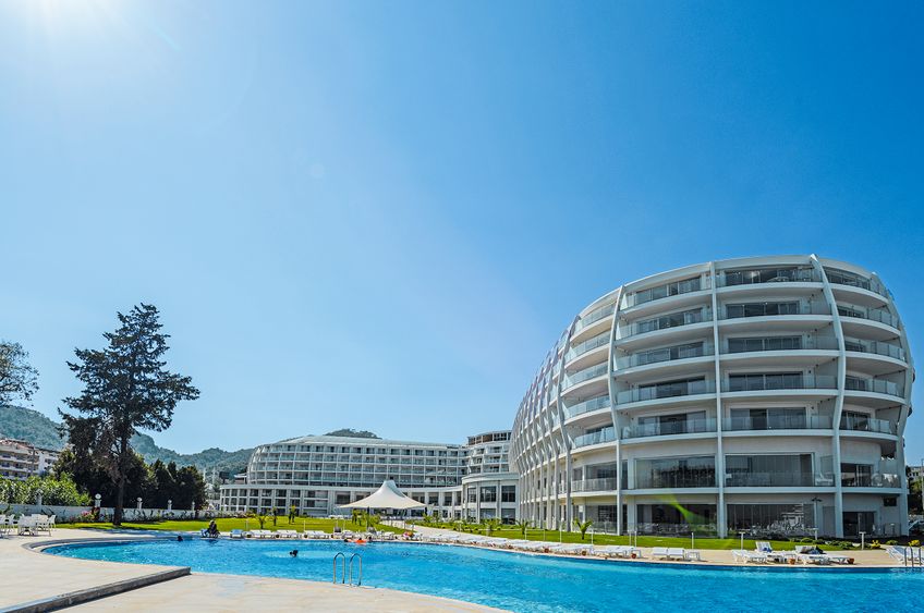 Das Hotel ist direkt an dem mit der Blauen Flagge ausgezeichneten Sandstrand von Marmaris gelegen und bietet einen schönen Ausblick auf das kristallklare Meer und das Umland. Das belebte Ortszentrum von Marmaris mit zahlreichen Restaurants, Bars, Geschäften und Unterhaltungsmöglichkeiten ist ca. 3 km entfernt. Eine Bushaltestelle befindet sich vor dem Hotel. Zum Flughafen Dalaman sind es knapp 100 km.