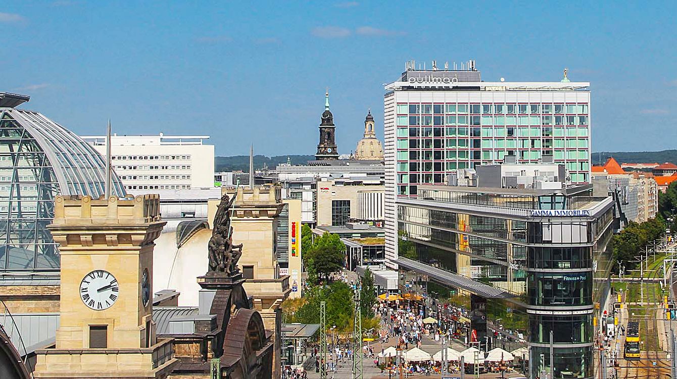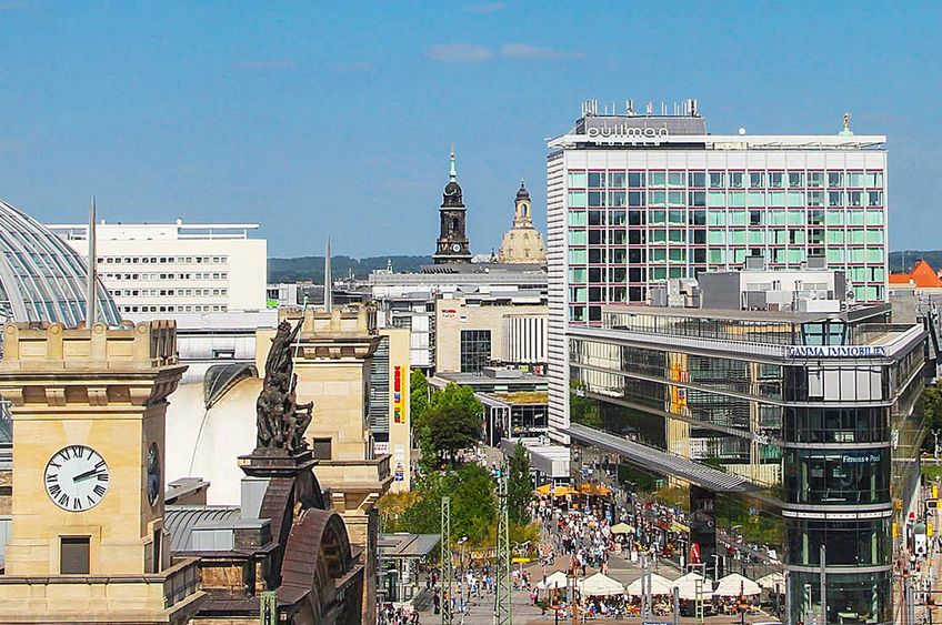 Das Hotel liegt direkt an der Einkaufsstrasse «Prager Strasse» mit zahlreichen Einkaufs- und Unterhaltungsmöglichkeiten. Viele Sehenswürdigkeiten wie die berühmte Altstadt mit der Frauenkirche und Zwinger (etwa 1,5 km) sind in einem kurzen Spaziergang zu erreichen. S-Bahn: Hauptbahnhof Nord (ca. 150 m), Hauptbahnhof in rund 300 m Entfernung.