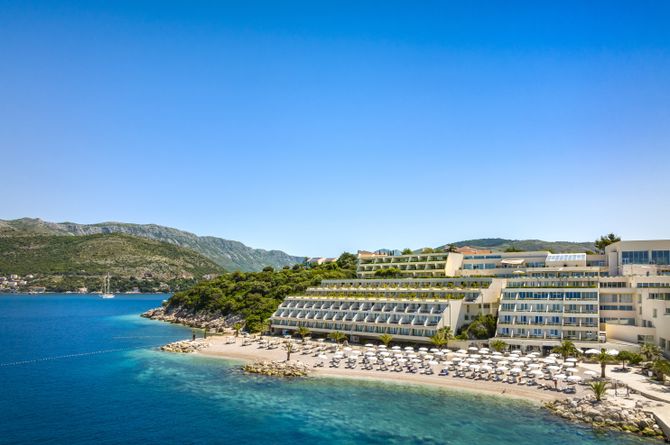 Das Hotel befindet sich an der Spitze der grünen Halbinsel Babin Kuk und damit direkt am Kiesstrand mit Tauchzentrum. Die zwei weiteren Kiesstrände «Coral Beach Club» (ca. 400 m) und «Copacabana» (ca. 600 m) liegen in der Nähe. Das historische Zentrum von Dubrovnik mit zahlreichen Restaurants, Bars, Geschäften und Sehenswürdigkeiten ist knapp 6 km entfernt. Den Flughafen Dubrovnik erreichen Sie nach etwa 25 km.