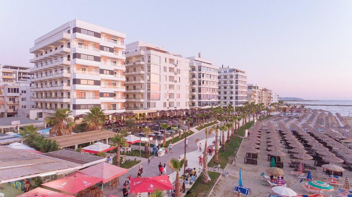 Nur durch die Strandpromenade vom flach abfallenden Sandstrand mit hoteleigenem Strandabschnitt getrennt. Rund um das Hotel befinden sich einige Restaurants, Bars und Geschäfte. Bis ins Zentrum der antiken Hafenstadt Durres mit seinen verschiedenen Sehenswürdigkeiten wie beispielsweise dem beeindruckenden römischen Amphitheater sowie weiteren historischen Stätten wie dem venezianischen Turm sind es rund 15 km. Der palmengesäumte Hauptplatz Qendra e Durresit in Durres zählt zu den schönsten Plätzen Albaniens. Der Flughafen Tirana ist etwa 45 km entfernt.
