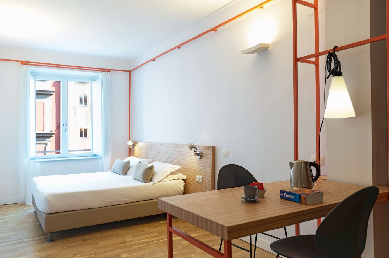 Die individuell und eher schlicht eingerichteten Zimmer (13–30 m2) verfügen über Dusche, WC, Föhn; Telefon, TV, WLAN (gratis), Safe, Minibar, Klimaanlage; teilweise mit Balkon. Die Familienzimmer (20–32 m2) bestehen aus 1 Zimmer und sind geräumiger. Die Duplex-Zimmer (26–45 m2) haben bis zu 6 m hohe Decken und bestehen aus 1 Wohn-/Schlafbereich im Erdgeschoss und einem offenen Schlafbereich im Zwischengeschoss. Die Studios (ca. 30 m2) haben zusätzlich zur Grundausstattung eine Kitchenette. Die Duplex-Studios (35–50 m2) sind zweistöckig. Die Appartements (45–50 m2) bestehen aus 1 Schlafzimmer und 1 Wohn-/Schlafzimmer mit Bettsofa und Kitchenette. Auch mit Balkon buchbar.
