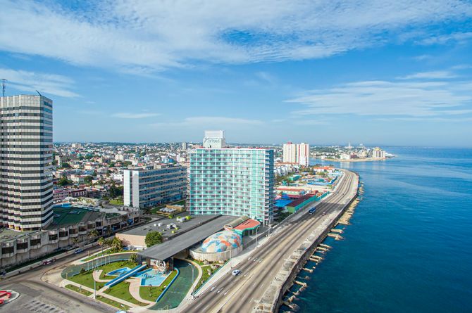 Direkt an der berühmten Uferstrasse Malecón im Stadtteil Vedado, rund 6,5 km westlich der Altstadt von Havanna gelegen. Ideal für lange Spaziergänge am Meer entlang. Einige Restaurants und Bars befinden sich in unmittelbarer Nähe. Bis zum internationalen Flughafen von Havanna trennen Sie knapp 20 km.