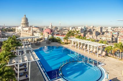 Gepflegtes Fünfsternehotel inmitten der Altstadt von Havanna mit Pools auf den Dachterrassen, Sicht auf die Kuppel des Kapitols von Kuba und erstklassigem Service.