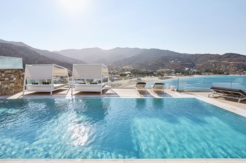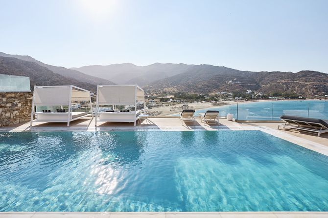Das terrassenförmig in den Hang gebaute Ios Palace Spa Hotel verfügt über einen Empfangsbereich mit Réception und WLAN (gratis). Für die kulinarischen Highlights empfängt Sie das A-la-carte-Restaurant mit griechischer und mediterraner Küche. Im Aussenbereich befinden sich 2 Meerwasserpools und 1 Infinity-Pool mit Sonnenterrasse und Poolbar. Die Nutzung von Liegestühlen und Sonnenschirmen an den Pools ist gratis, am Strand gegen Gebühr.