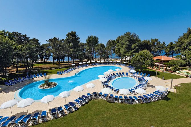 Alles-inklusive-Hotel mit Pool und schöner Liegewiese direkt am Strand von Umag. Die ideale Ferienformel für unvergessliche Ferientage!