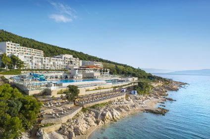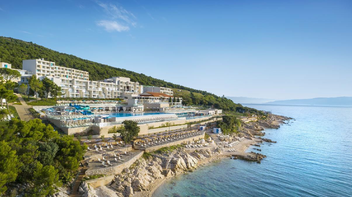 An wunderschöner Hanglage mit traumhaftem Blick auf das kristallklare Meer und die Inseln. Mehrere kleine Kiesbuchten befinden sich direkt beim Hotel. Das Ortszentrum von Rabac mit zahlreichen Geschäften, Restaurants und Cafés ist knapp 1,5 km entfernt. Zum Flughafen Pula sind es ca. 45 km.