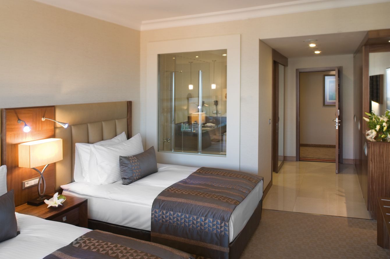 Die geräumigen Zimmer sind geschmackvoll und komfortabel eingerichtet. Sie verfügen über Bad/Dusche, WC, Föhn, Bademantel, Hausschuhe; Telefon, TV, WLAN (gratis), Safe, Minibar, Tee-/Kaffeekocher, Klimaanlage. Die Suiten sind bei gleicher Ausstattung geräumiger und bieten einen zusätzlichen Wohn-/Schlafbereich mit Bettsofa, einen zusätzlichen TV und eine Nespresso-Kaffeemaschine. Zudem erhalten Sie Zugang zur Executive Lounge.