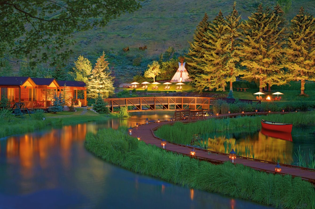 Nur 3 Blocks ausserhalb vom Town Square von Jackson Hole und trotzdem mitten im Grünen. Das Hotel liegt idyllisch an einem kleinen Bach.