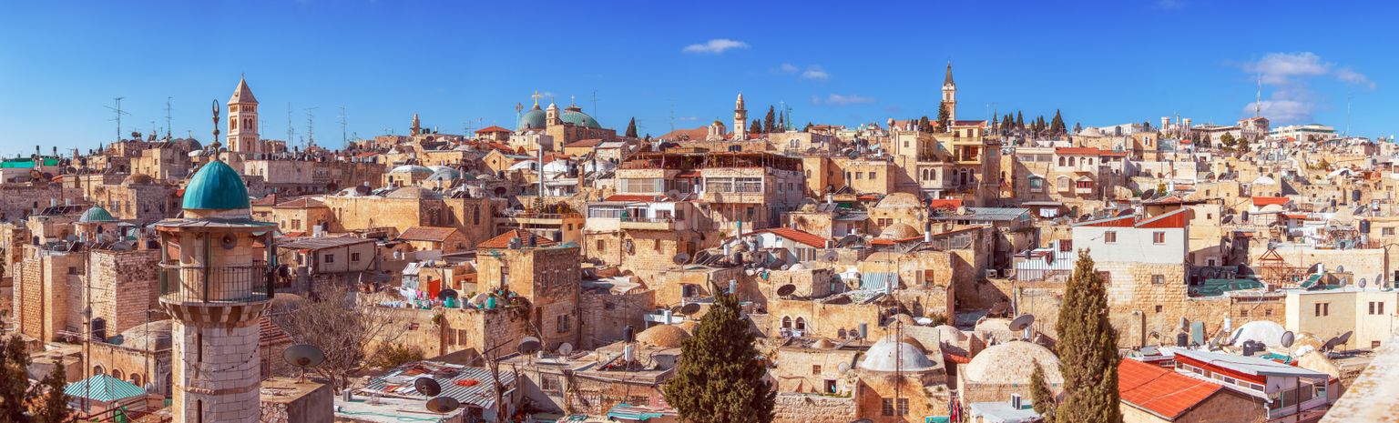 Jerusalem ist die Hauptstadt von Israel und liegt zwischen der südöstlichen Mittelmeerküste (ca. 70 km) und dem Toten Meer (ca. 40 km). Bis nach Tel Aviv sind es etwa 72 km. Ausflüge bieten sich in das rund 10 km südlich gelegene Bethlehem, Geburtsort von Jesus Christus, und zum Toten Meer an.