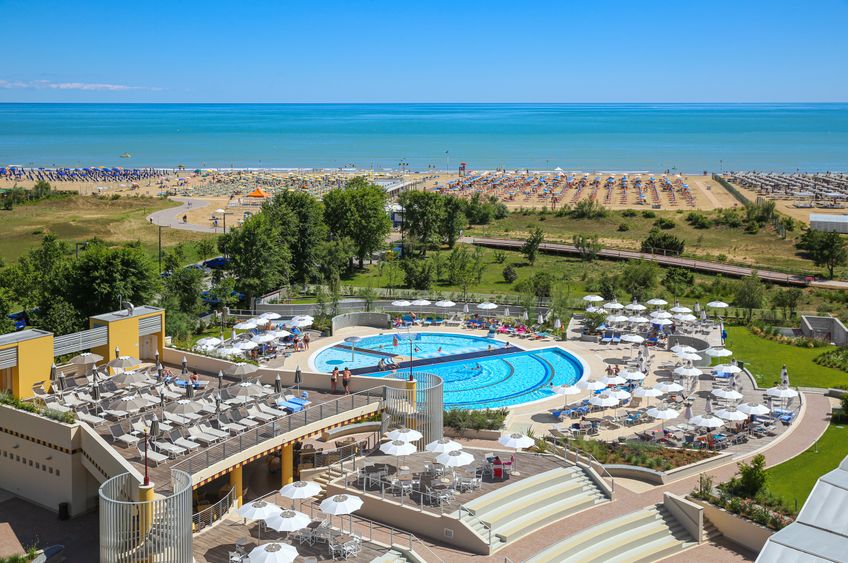 An privilegierter Lage befindet sich das Hotel direkt am langen und flach abfallenden, privaten Sandstrand, umgeben von einer üppigen, mediterranen Parklandschaft und der unberührten und malerischen Lagune von Bibione. Der Jachthafen und das Zentrum von Bibione Pineda mit einigen Restaurants, Bars und Einkaufsmöglichkeiten sind etwa 200 m von der Hotelanlage entfernt.