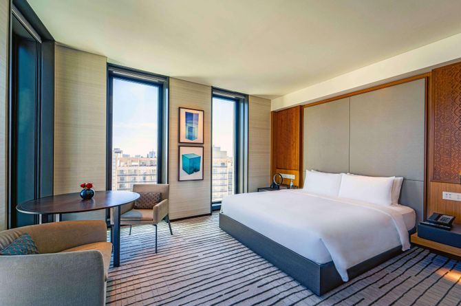 Das Park Hyatt Doha beeindruckt mit einer Architektur, die gekonnt Tradition und Innovation miteinander verbindet. Mit klaren Linien, grosszügigen Raumkonzepten und edelsten Materialien schafft das Hotel eine Atmosphäre von luxuriöser Ruhe und stilvollem Charme. Zur Einrichtung gehören ein Empfangsbereich mit Réception und WLAN (gratis). Gourmetrestaurant, 2 A-la-carte-Restaurants (gesunde und japanische Küche), Café, Bar. Parkplätze gratis.