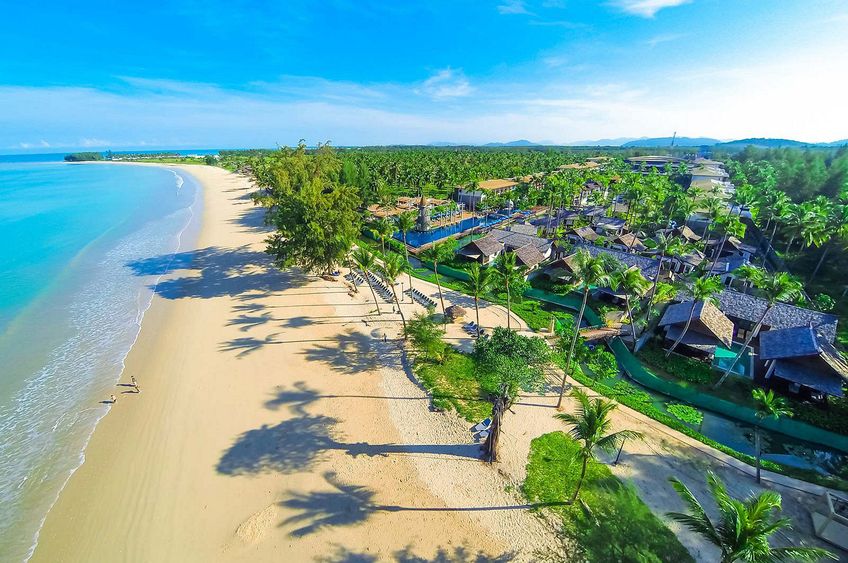 Direkt an einem feinen, weissen und flach abfallenden privaten Sandstrand gelegen, ist dieses Hotel von tropischen Kokosnuss-Plantagen umgeben. Das Zentrum von Khao Lak mit seinen zahlreichen Cafés, Boutiquen und Restaurants ist etwa 14 km entfernt. In der Nähe befinden sich viele Attraktionen wie der Sai-Rung-Wasserfall (ca. 9 km) oder die vier Nationalparks. Ein besonderer Geheimtipp für Ausflüge in der Umgebung: Die beeindruckende Smaragdhöhle auf Koh Muk - ein absolutes Muss! Abschliessend sei noch erwähnt: Der Flughafen Phuket liegt ca. 100 km entfernt.
