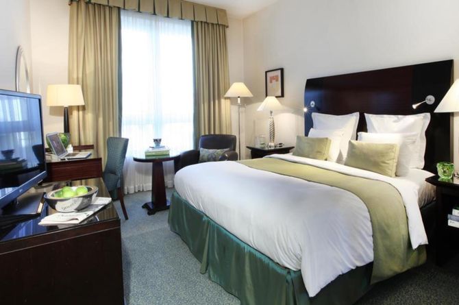 Die stilvoll eingerichteten Zimmer (24–35 m2) verfügen über Dusche, WC, Föhn; Telefon, Sat.-TV, WLAN (gratis), Minibar, Klimaanlage. Die Suiten (ca. 45 m2) sind bei gleicher Grundausstattung geräumiger.