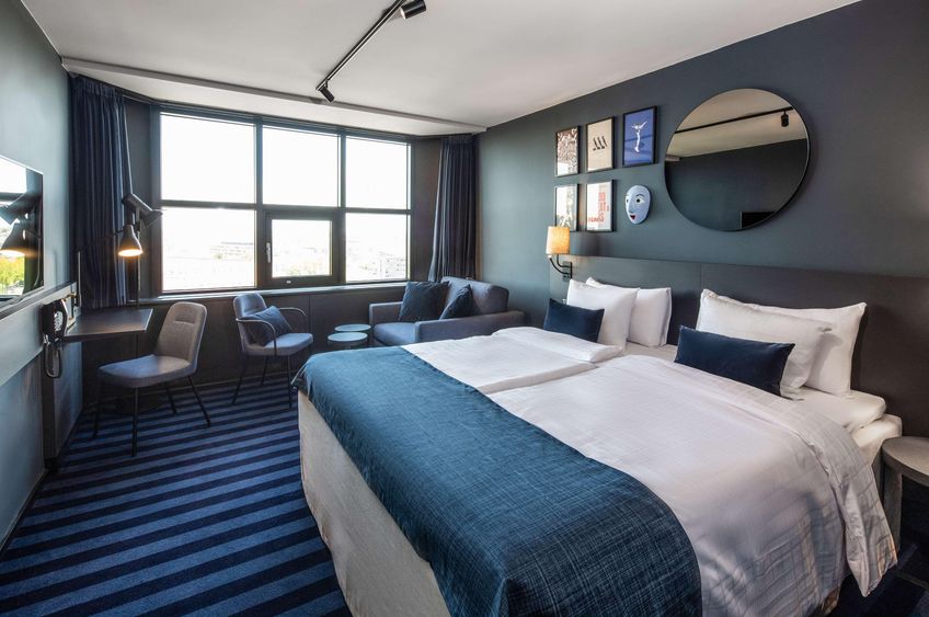 Die stilvoll und im skandinavischen Dekor eingerichteten Zimmer (17–19 m2) verfügen über Bad oder Dusche, WC, Föhn; Telefon, TV, WLAN (gratis), Gratissafe, Klimaanlage. Die Suiten (35–40 m2) bestehen aus 1 Schlafzimmer und 1 separaten Wohn-/Schlafzimmer mit Bettsofa und bieten zusätzlich zur Grundausstattung eine Nespresso-Maschine, einen Minikühlschrank sowie Bademäntel und Hausschuhe. Zimmerservice.