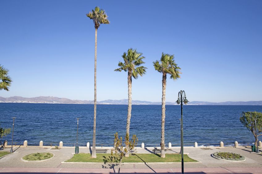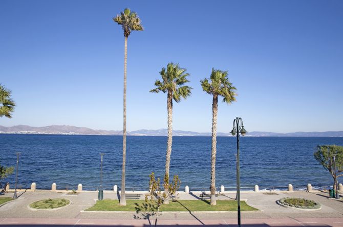 Nur von der alleeartigen Uferstrasse und -Promenade von der Ägäis getrennt, geniesst man vom Hotel aus eine faszinierende Meersicht. In der unmittelbaren Umgebung sorgen verschiedene Geschäfte, Restaurants, Bars und Cafés sowie in 350 m ein Strand für angenehme Ferienstimmung. Die Altstadt und der malerische Hafen von Kos auf der gleichnamigen Dodekanesinsel sind nach etwa 800 m erreichbar und die berühmte Platane des antiken Arztes Hippokrates nach ungefähr 650 m. Zum Flughafen sind es rund 25 km.