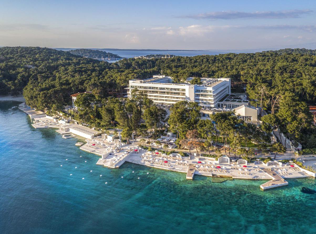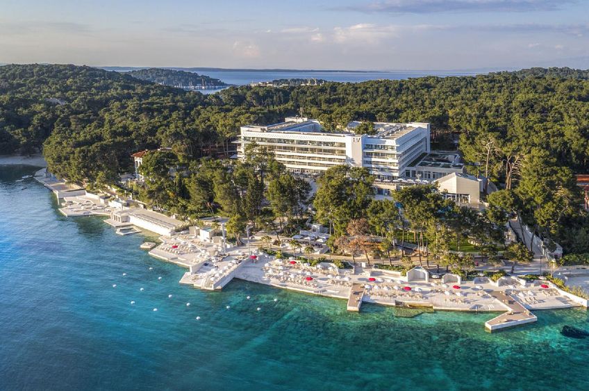 Das moderne Hotel liegt im Norden der Insel in der Bucht Cikat, etwa 100 m vom Fels-/Kiesstrand mit Badeplateaus entfernt. Nach Mali Losinj mit Geschäften, Strandpromenade, Restaurants und Bars sind es etwa 2 km, nach Veli Losinj ca. 6 km. Der Flughafen Rijeka befindet sich in einer Entfernung von rund 105 km.