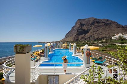 Nur die Uferstrasse trennt das Hotel vom dunklen Sand-/Kiesstrand Playa de Valle Gran Rey. Die kleine, schöne Sandbucht Charco del Conde ist nach etwa 350 m erreichbar. Hinter dem Hotel erwartet Sie ein grünes Tal mit einer üppigen Vegetation. Einige Restaurants, Bars und Geschäfte liegen knapp 200 m entfernt. Zum Hafen von San Sebastian mit regelmässigen Fährverbindungen nach Teneriffa sind es ca. 50 km.