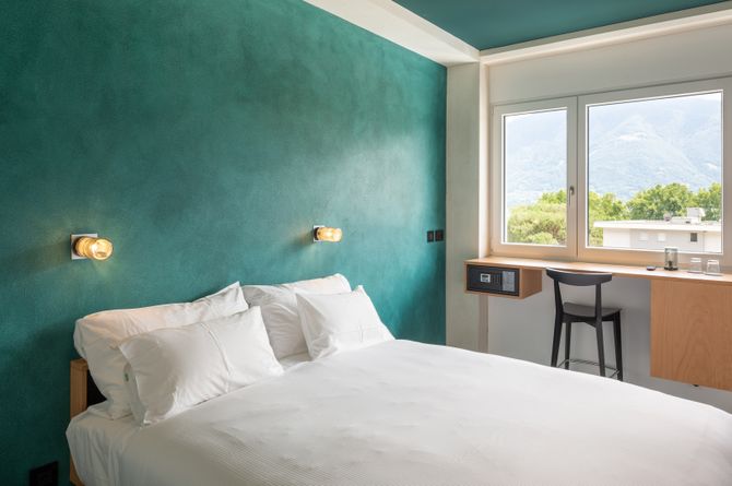 Die funktional, hell und im modernen Design eingerichteten Zimmer (ca. 15 m2) verfügen über Dusche, WC, Föhn; Telefon, TV, WLAN (gratis), Gratissafe, Minibar, Klimaanlage. Die Dreibettzimmer (ca. 17 m2) haben zusätzlich ein Hochbett. Die Familienzimmer (ca. 34 m2) bestehen aus 2 Dreibettzimmern mit Verbindungstür. Die Studios (ca. 23 m2) verfügen neben der Grundausstattung über eine Kitchenette und einen Balkon.