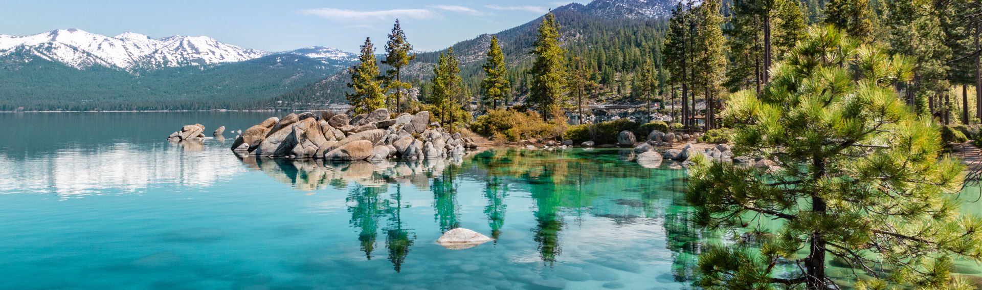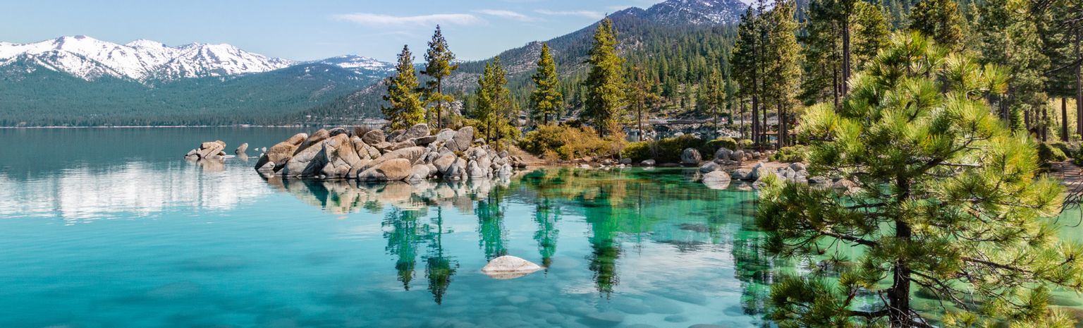 Der tiefblaue See ist einer der höchstgelegenen Seen der USA, umgeben von Kieferwäldern in einer imposanten Berglandschaft und auf der Grenze von Kalifornien und Nevada gelegen. Mehrere State Parks mit schönen Sandstränden laden zum Verweilen ein. Das Gebiet ist bekannt für zahlreiche Outdoor-Aktivitäten wie Wandern, Biken, Golfen und Windsurfen. Und in der kalten Jahreszeit ist natürlich Wintersport angesagt.