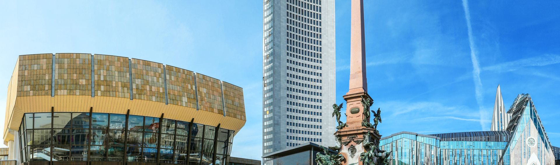 Einen der grösseren Plätze Deutschlands finden Sie in Leipzigs Innenstadt. Der Augustusplatz wird umgeben vom Leipziger Opernhaus, der Universität Leipzig und dem höchsten Bauwerk der Stadt, dem Panorama Tower, auch bekannt als das City-Hochhaus. Von hier oben erhalten Sie einen atemberaubenden Ausblick über die Stadt. Das City-Hochhaus ist mit 142,5 m Höhe ein Wahrzeichen der Stadt und bietet einen traumhaften Blick sowie ein Restaurant.