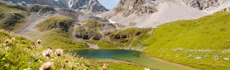 Courchevel im Sommer: Im Sommer hüllt sich der Ort in ein saftiges Grün und beeindruckt mit zahlreichen reizvollen Wandermöglichkeiten zwischen kristallklaren Seen, malerischen Wäldern und imposanten Gipfeln vor einer atemberaubenden Bergkulisse. Courchevel ist umgeben von einem reichen Naturerbe. Entdecken Sie den Nationalpark Vanoise, welcher ursprünglich als Schutzgebiet für Steinböcke gegründet wurde, oder unternehmen Sie eine Wanderung im Naturgebiet La Rosière. Mit etwas Glück sehen Sie sogar Murmeltiere herumtollen. Zu den beliebtesten Wanderungen zählen unter anderem die familienfreundliche Tour zum Wasserfall Cascade des Poux oder der Chemin du Paradis, welcher zu den Olympia-Sprungschanzen am Lac de Praz führt. Eine weitere wunderschöne Route ist die Wanderung an die Lacs Merlet, die im Herzen des Vanoise-Nationalparks liegen und vom Gipfel Aiguille du Fruit dominiert werden.