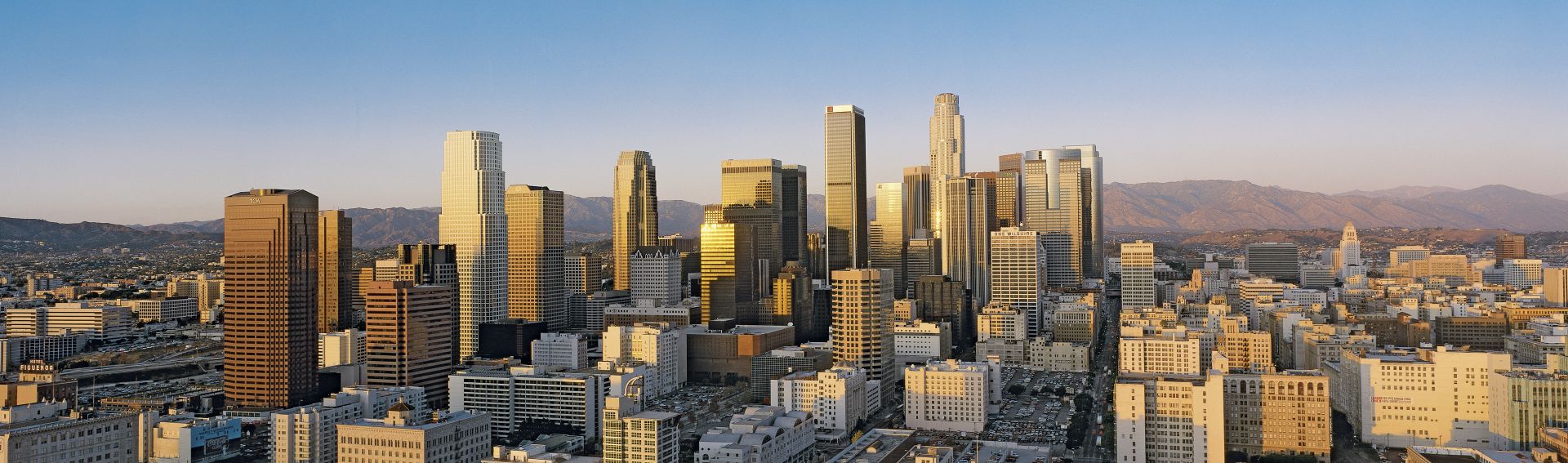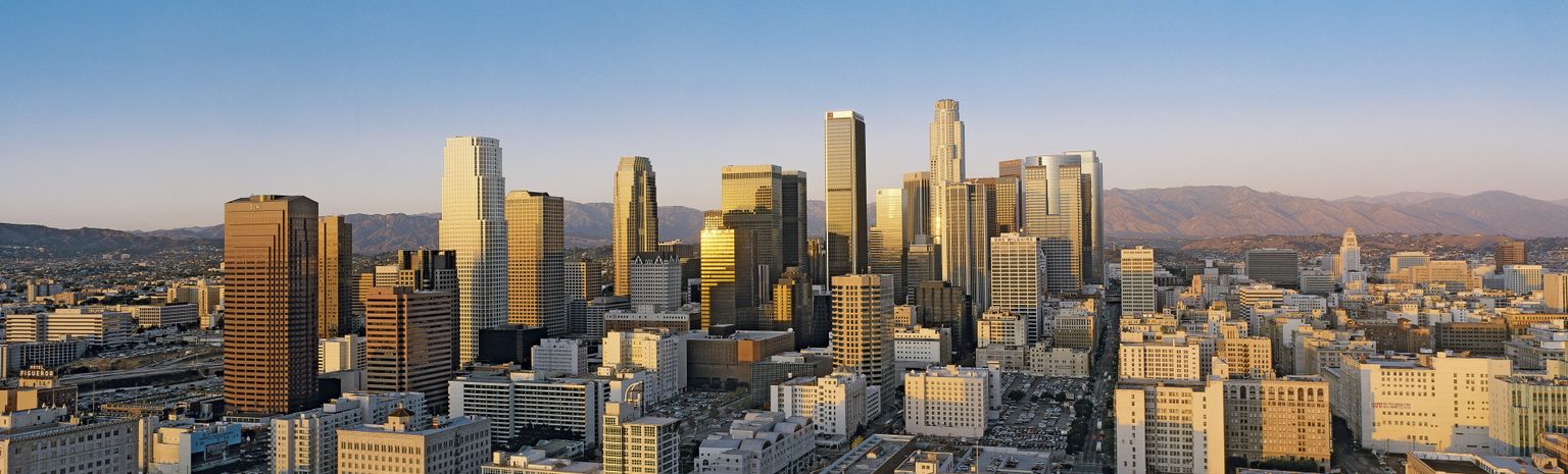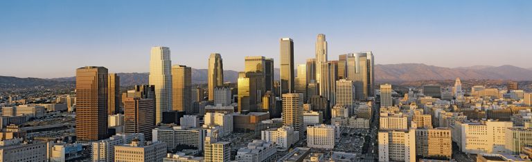 Die Innenstadt von Los Angeles (Downtown L.A.) liegt an dem Punkt, an welchem vor ca. 250 Jahren die Stadt gegründet wurde. Früher war ein Grossteil der Stadt hügeliges Wohnviertel, jetzt flachplaniert und mit vielen Hochhäusern, welche einem Blicke auf die Skyline mit Bergen im Hingergrund gewährt.