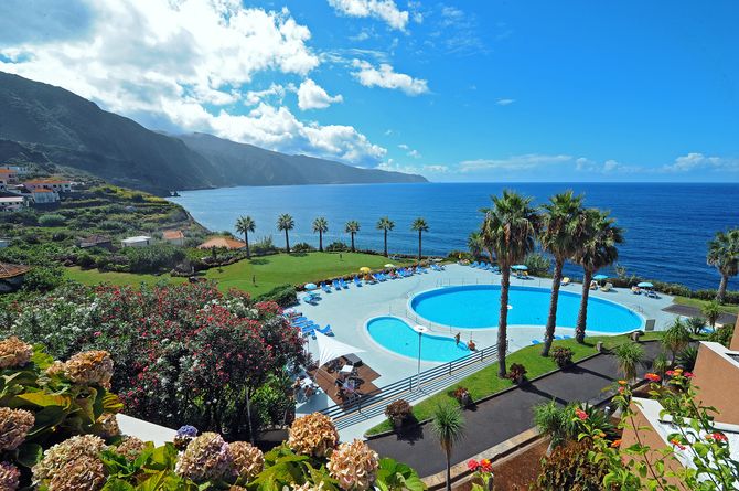 Direkt am Meer am Rande einer steilen Klippe und nur ca. 200 m vom felsigen Strand entfernt. Das Ortszentrum von Ponta Delgada mit Einkaufsmöglichkeiten, einigen Restaurants und Cafés befindet sich in rund 1 km (Gratis-Shuttlebus) und das Stadtzentrum von Funchal in etwa 40 km Entfernung. Bis zum Flughafen Funchal sind es ca. 55 km.