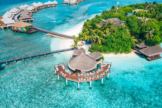 Mit Villen, die über der Lagune schweben und einem eigenen Hausriff ist dieses Hotel ein wahres Paradies. Eine besondere Attraktion in der Nähe ist das lokale Dorf Maafushi, bekannt für seine authentische Kultur und traditionellen Handwerksläden - ein wahrer Geheimtipp abseits der Touristenpfade. Das Stadtzentrum von Male sowie den Flughafen erreicht man in nur knapp 15 Minuten mit dem Speedboot.