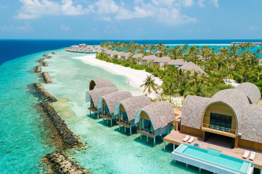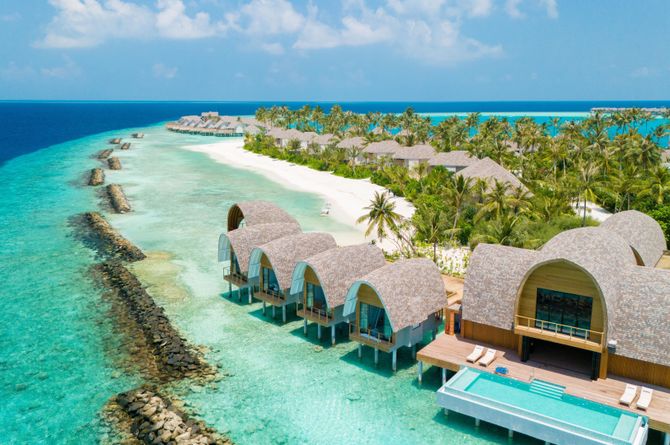 Die grosszügigen, lichtdurchfluteten Villen verfügen alle über Bad, Regendusche, WC, Föhn, Bademantel, Hausschuhe; Telefon, TV, WLAN (gratis), Bluetooth-Lautsprecher, Safe, Espressomaschine, Tee-/Kaffeekocher, Minibar, Weinkühlschrank, Klimaanlage; Terrasse mit Privatpool. Die Beach Pool Villen (ca. 200 m²) befinden sich am Strand. Die 2-Schlafzimmer-Beach-Pool-Villen (ca. 280 m²) sind zweistöckig und bieten einen Wohnbereich und ein zweites Schlafzimmer. Die Deluxe Beach Pool Villen (ca. 240 m²) sind luxuriöser und geräumiger gestaltet. Die Water Pool Villen (ca. 180 m²) sind auf Stelzen über dem Meer gebaut und bieten zusätzlich einen direkten Zugang ins Wasser. Die Water Pool Villen mit Lagunensicht (ca. 180 m²) bieten Blick über die Lagune. Die Deluxe Water Pool Villen (ca. 255 m²) sind geräumiger und bieten exklusivere Annehmlichkeiten. Auch als Deluxe Water Pool Villen mit Lagunensicht (ca. 255 m²) buchbar.
