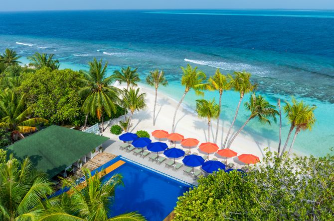 Im für seine lebendige Unterwasserwelt bekannten Nord-Male-Atoll gelegen, befindet sich die mittelgrosse Hotelinsel knapp 50 Minuten mit dem Speedboat vom internationalen Flughafen der Malediven entfernt. Das hoteleigene Hausriff ist nur einen kurzen Schwimmzug von Strand entfernt.